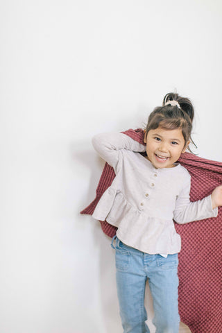 The perfect comfort item arrived right on time. Our beautiful LoveHeld blanket showed up just as our girl is getting her very first tooth, and she instantly snuggled it close. She’s claimed Mama’s blanket as her own, so now it’s time to find her a little lovey to cherish