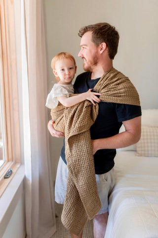 Uniquely woven from our soft linen/cotton Signature Blanket Waffle Weave to be wonderfully breathable, very supportive, and comfortable for you and your little love.