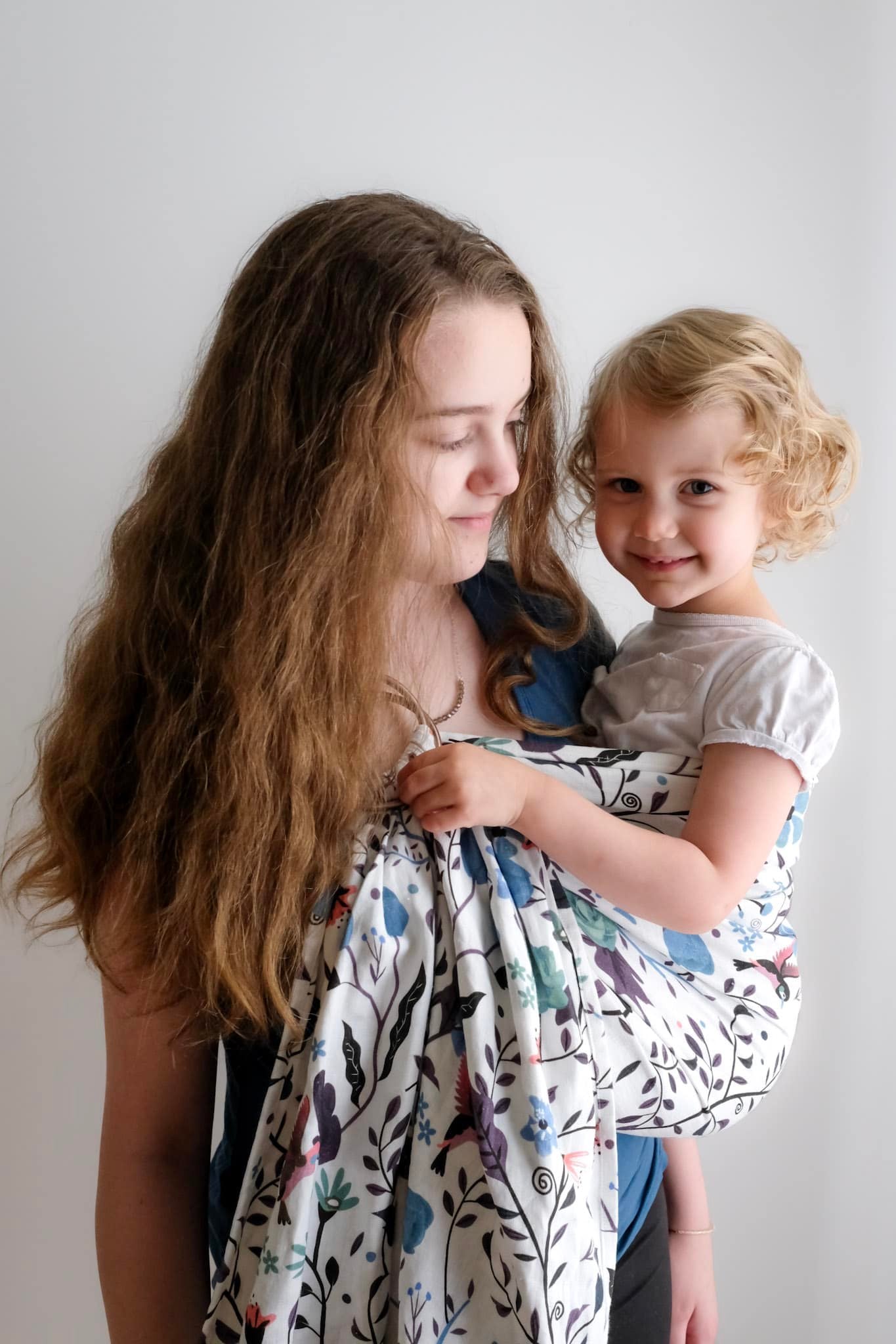 This is my absolute favorite sling for birth through toddlerhood. It is so cushy, soft, and supportive. It molds to my toddlers body the way my every day waffle did when she was a newborn, but with so much support. She just snuggles on it, and loves to be carried in it!