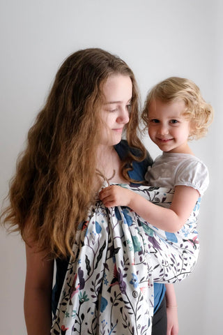 Felicity is softened to perfection by humbled hands so that it's ready to serve your family as soon as it arrives home, with no "breaking-in" or pre-washing needed! This beautiful ring sling has a lightweight and breathable feel, perfect for carrying little loves weighing 8 pounds through and up to 35 pounds on all of your wonderful babywearing adventures!