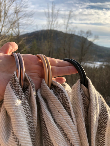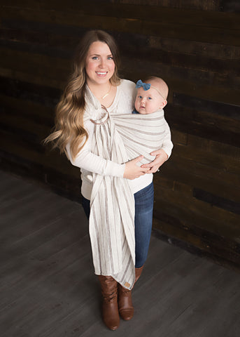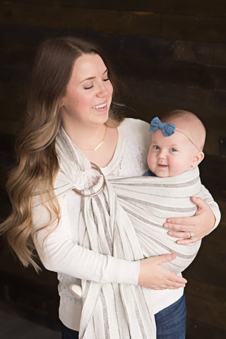 LoveHeld's Oliver is a blankety soft and super cushy/soft ring sling featuring an earthy warm grey and neutral tones. Exclusively designed and handcrafted with great care from two ultra-soft layers of our Oeko-Tex certified woven linen.