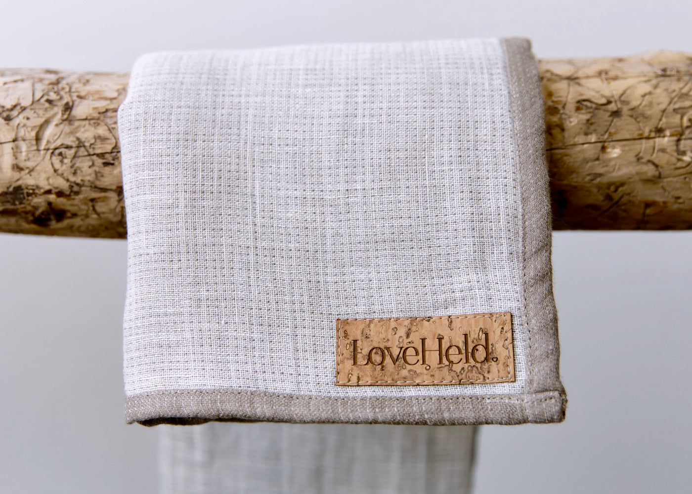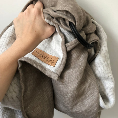 LoveHeld's Piper is a beautiful neutral two-toned and super cushy/soft ring sling. Exclusively designed and handcrafted with great care from two ultra-soft layers of our Oeko-Tex certified woven cloud linen.